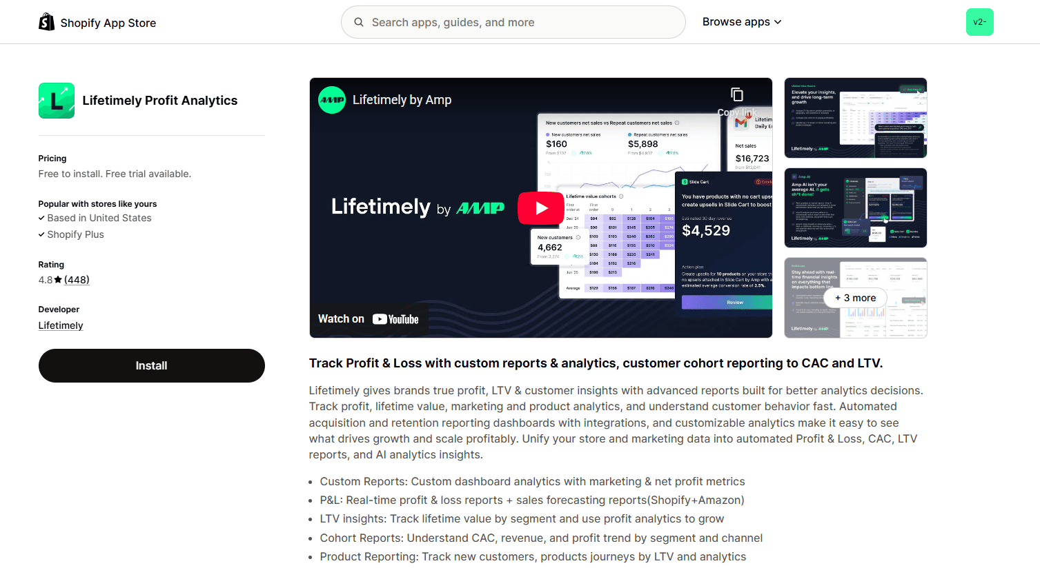Based on overall depth, flexibility, integrations, and scalability, Lifetimely Profit Analytics stands out as the strongest all-around Shopify Analytics app for growth-focused brands.