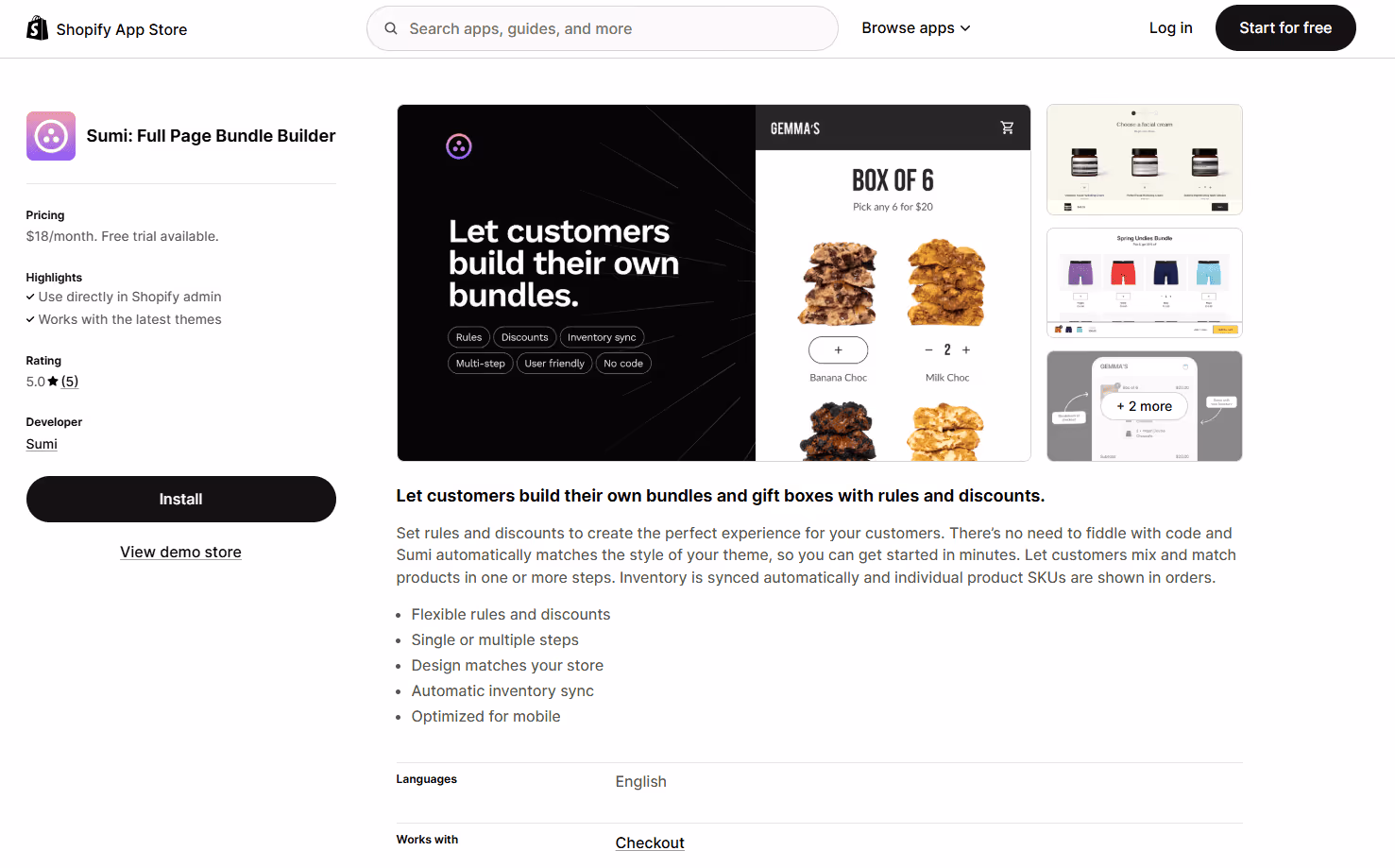 Sumi provides a full-page bundle experience with strong emphasis on clean, mobile-friendly UX. It's ideal for visually immersive bundle builders or thematic collections.