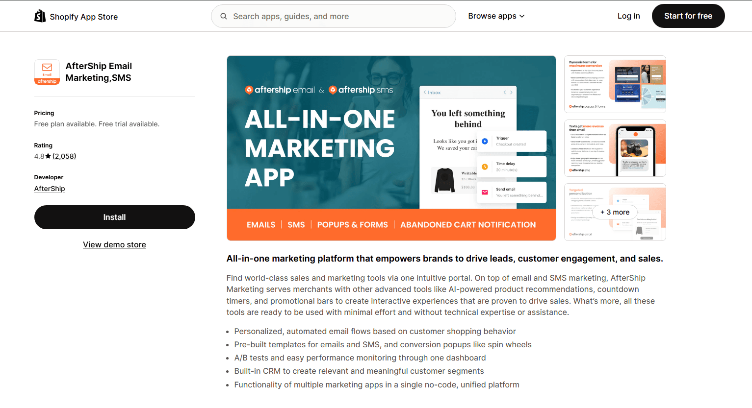 AfterShip Email Marketing (formerly Automizely) is a Shopify email marketing app positioned as an all-in-one retention platform. Once installed, it syncs customer, order, and behavioral data from Shopify to power automated email and SMS flows across the customer lifecycle.