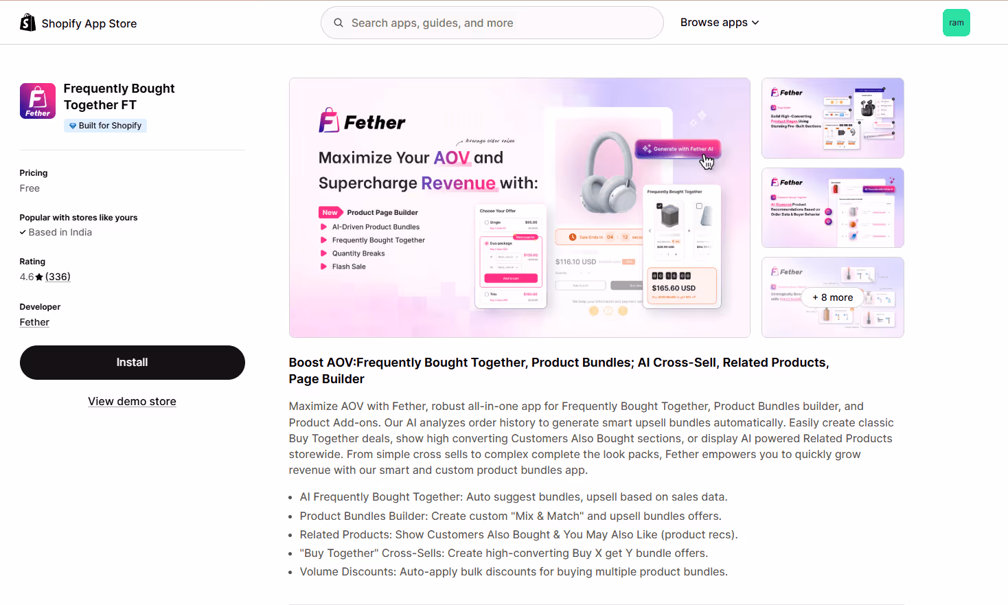 Frequently Bought Together FT by Fether is a Shopify Frequently Bought Together App that does both AI-driven FBT recommendations and bundle creation.