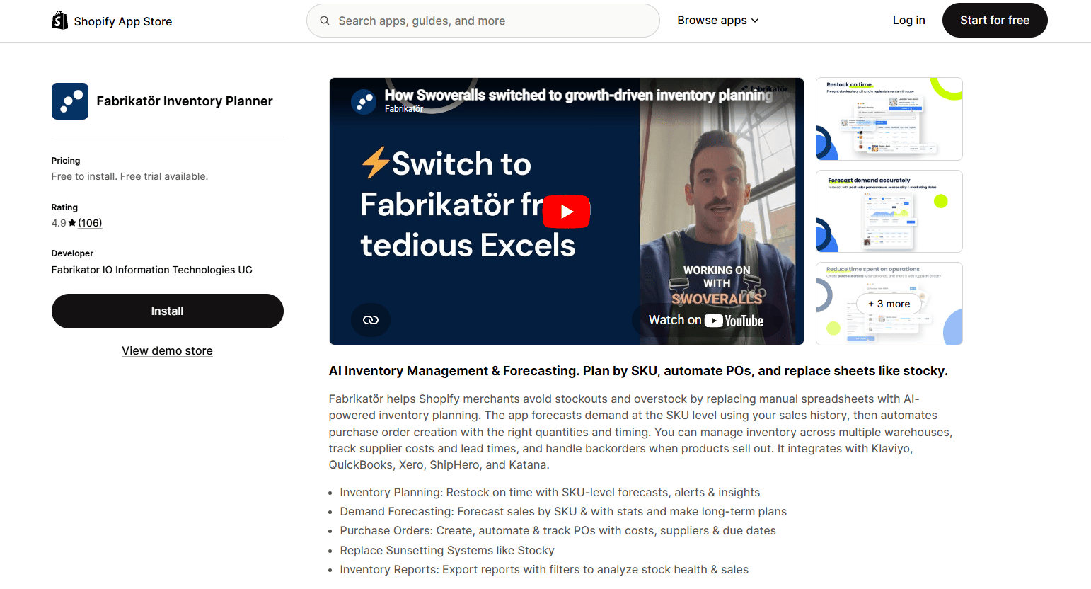 Verify integrations before committing. If you use Klaviyo for back-in-stock, QuickBooks or Xero for accounting, or ShipHero for 3PL, your inventory app needs to integrate cleanly. Fabrikatör and Prediko have the broadest integration lists. Verify your specific stack works on a free trial before paying.