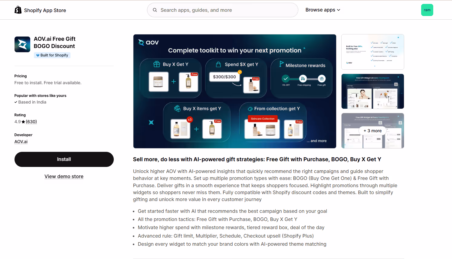 AOV.ai is a Shopify auto-add-to-cart app that pairs gifting with progress bars and an “AI-assisted” setup approach. It’s positioned for merchants who want tiered milestones, segmentation controls, and multi-campaign management.