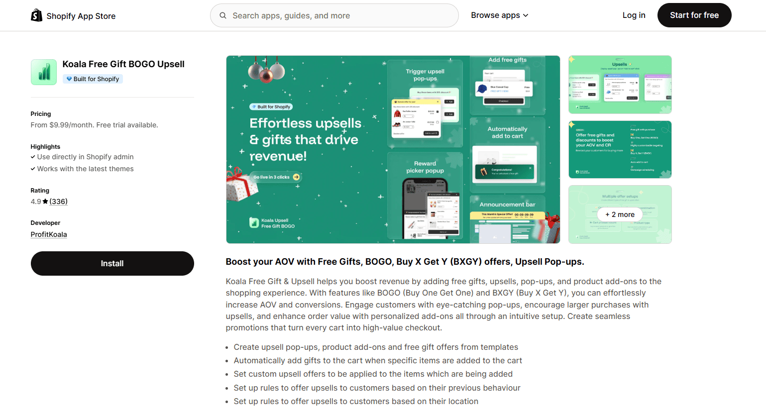 Koala Free Gift BOGO Upsell is a simpler Shopify BOGO app designed for merchants who want a quick setup without in-depth discount logic.