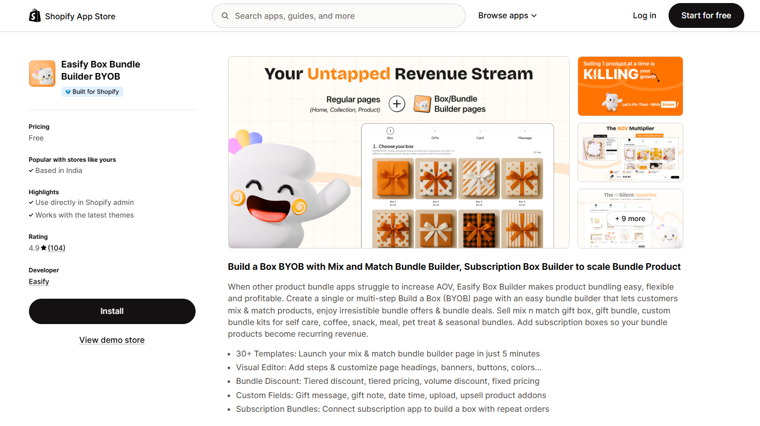 Easify is a Shopify build-your-own-bundle app that provides a beginner-friendly approach to building boxesp[;. It comes with pre-designed templates, and merchants can quickly launch a bundle page from the selection. The interface is accessible, and the simplicity makes the app appealing for smaller catalogs.