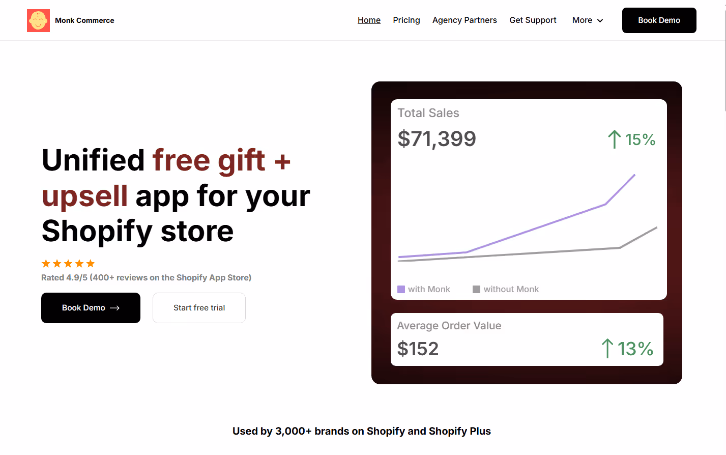 Monk is a checkout upsell app which offers the feature as a part of a larger free gift, bogo & discount offering.