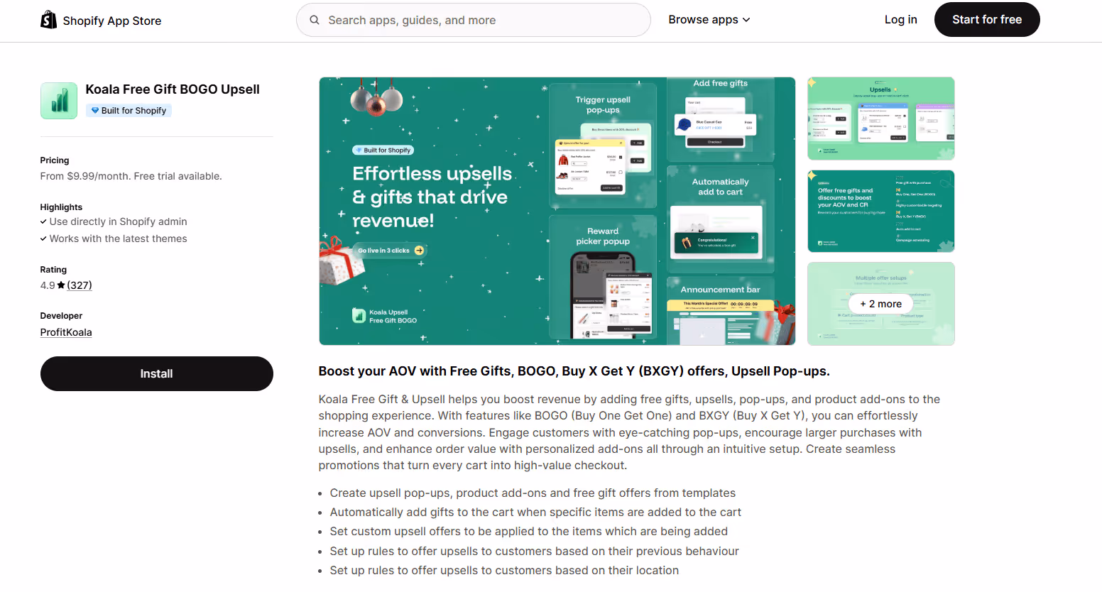 Koala focuses on pop‑up‑based upselling and product add‑on offers.