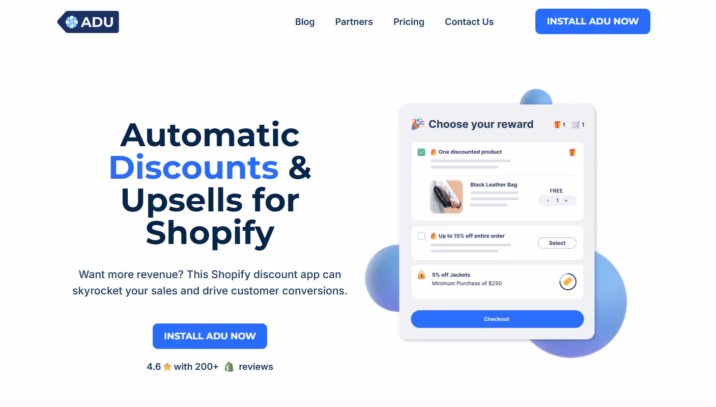 ADU (by Tabarnapp) is primarily a discount automation engine that covers free gifts as part of its suite. It lets merchants create BOGO or gift‑with‑purchase rules and automatically apply the best deal to each cart.