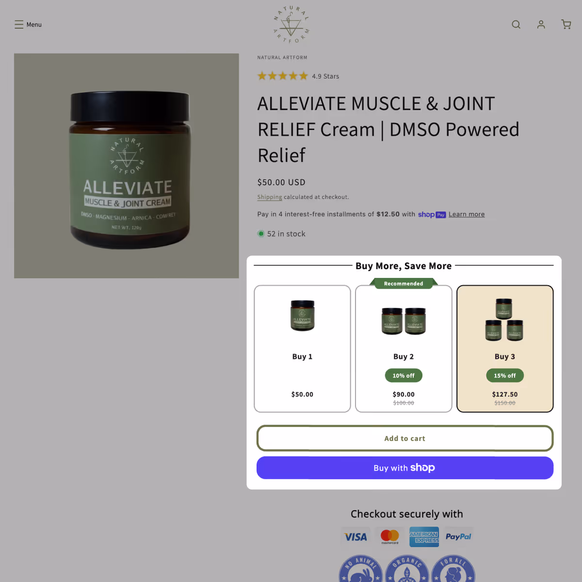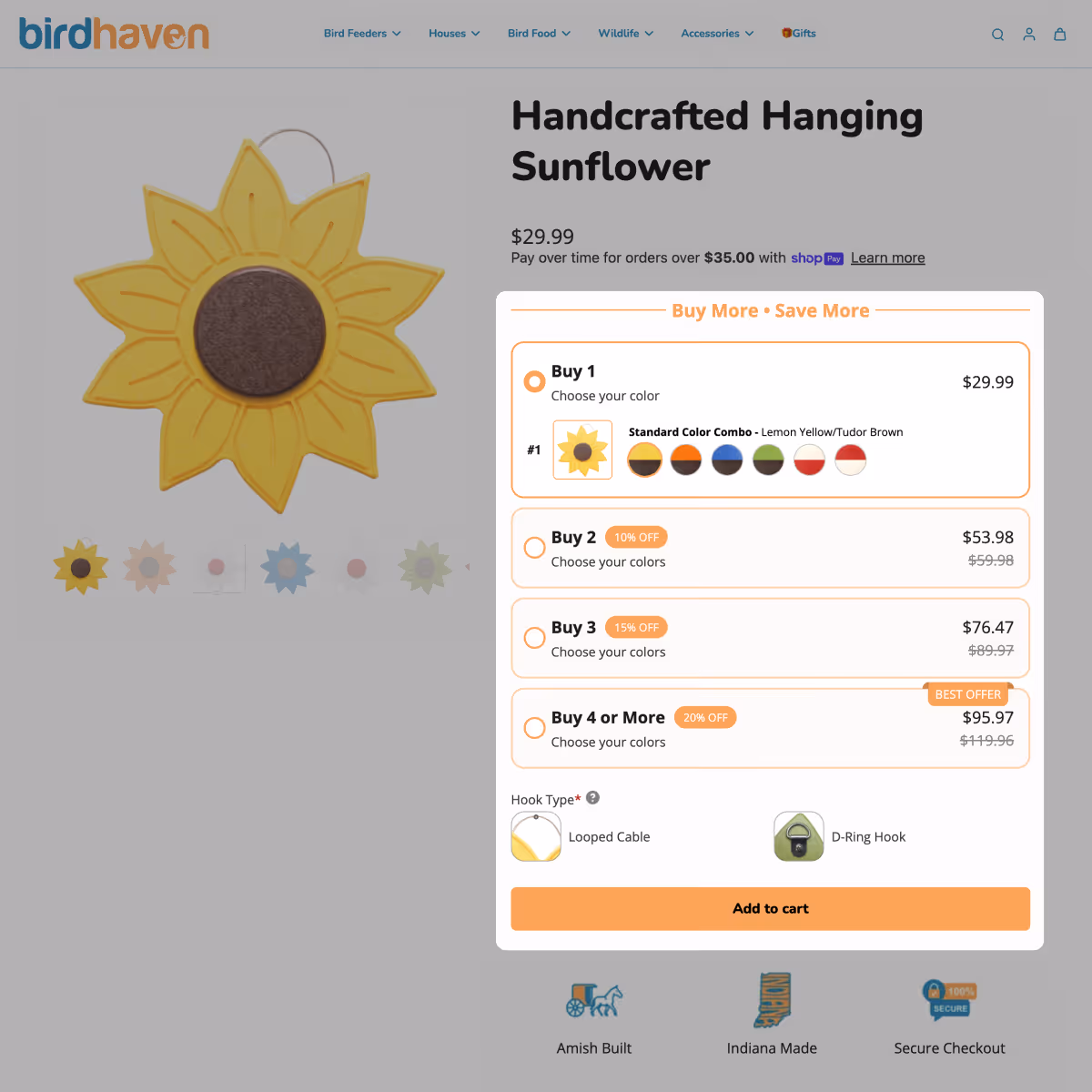 Fly empowers you to leverage 2 proven methods that boost AOV: Quantity Breaks and Product Bundles.