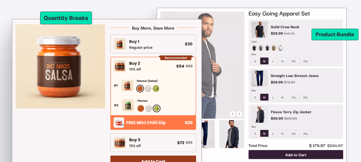• Multiple Bundles: Create impactful product bundles, quantity breaks, and upsells in one single app.