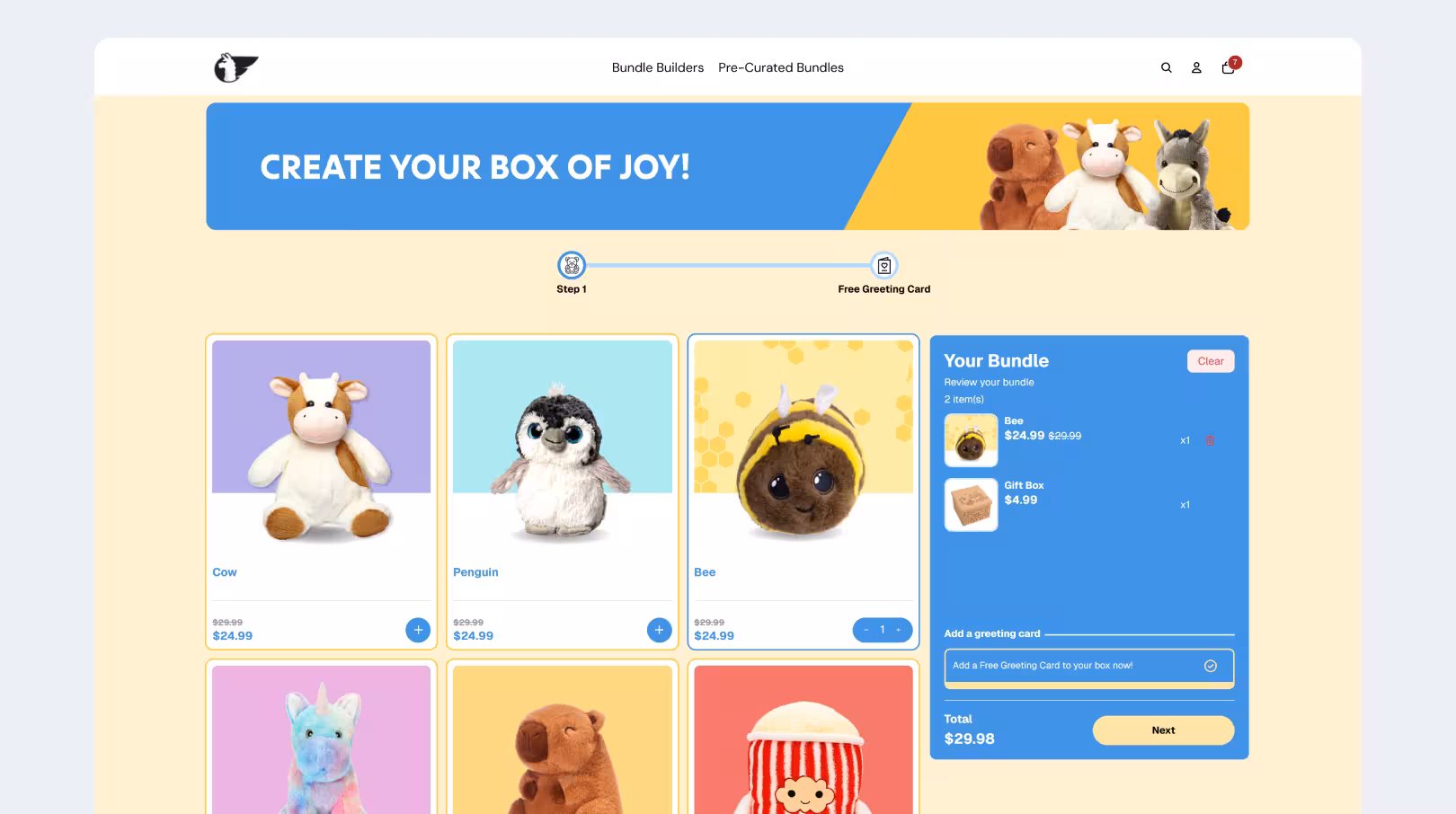 Easy bundle builder is beautifully designed, intuitive, and fits seamlessly with our brand’s gifting experience. What truly stood out was the onboarding support & customer service